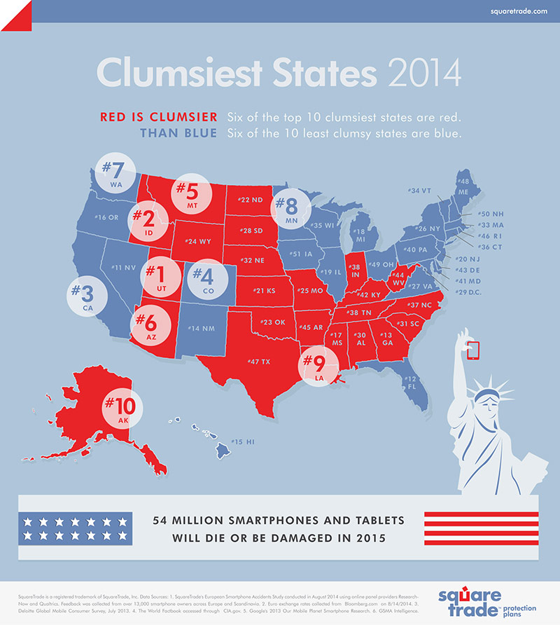 Grand Old Party Fouls: 2014 Clumsiest States Index Reveals Red States Outpace Blue States in Device Damage INFOGRAPHIC